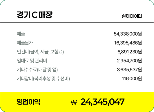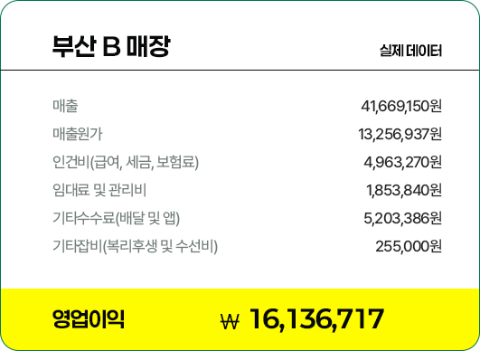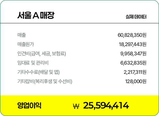 실제 매장을 기준으로 한 데이터를 확인하세요!