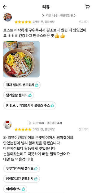샐러드, 샌드위치 메뉴 특성상 양상추 등의 채소는 계절, 날씨에 따라