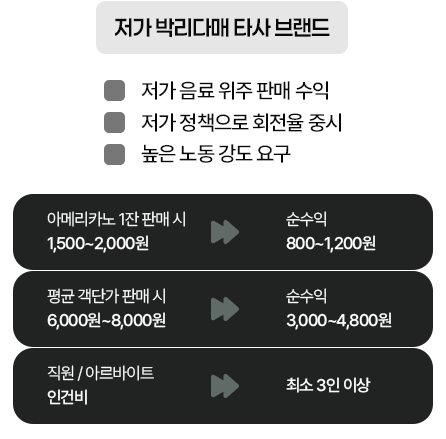 여느 브랜드와 비교가 불가하여 단언컨대 개인 카페 창업비용보다 저렴합니다.